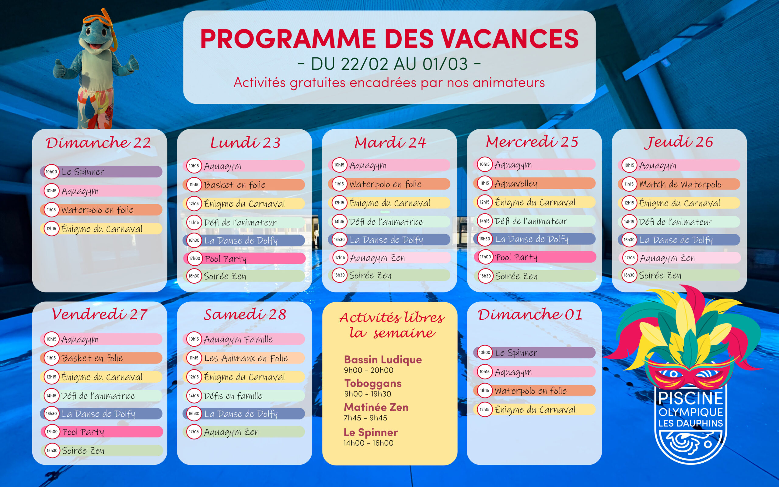 Vacances de Carnaval à la Piscine Olympique Les Dauphins
